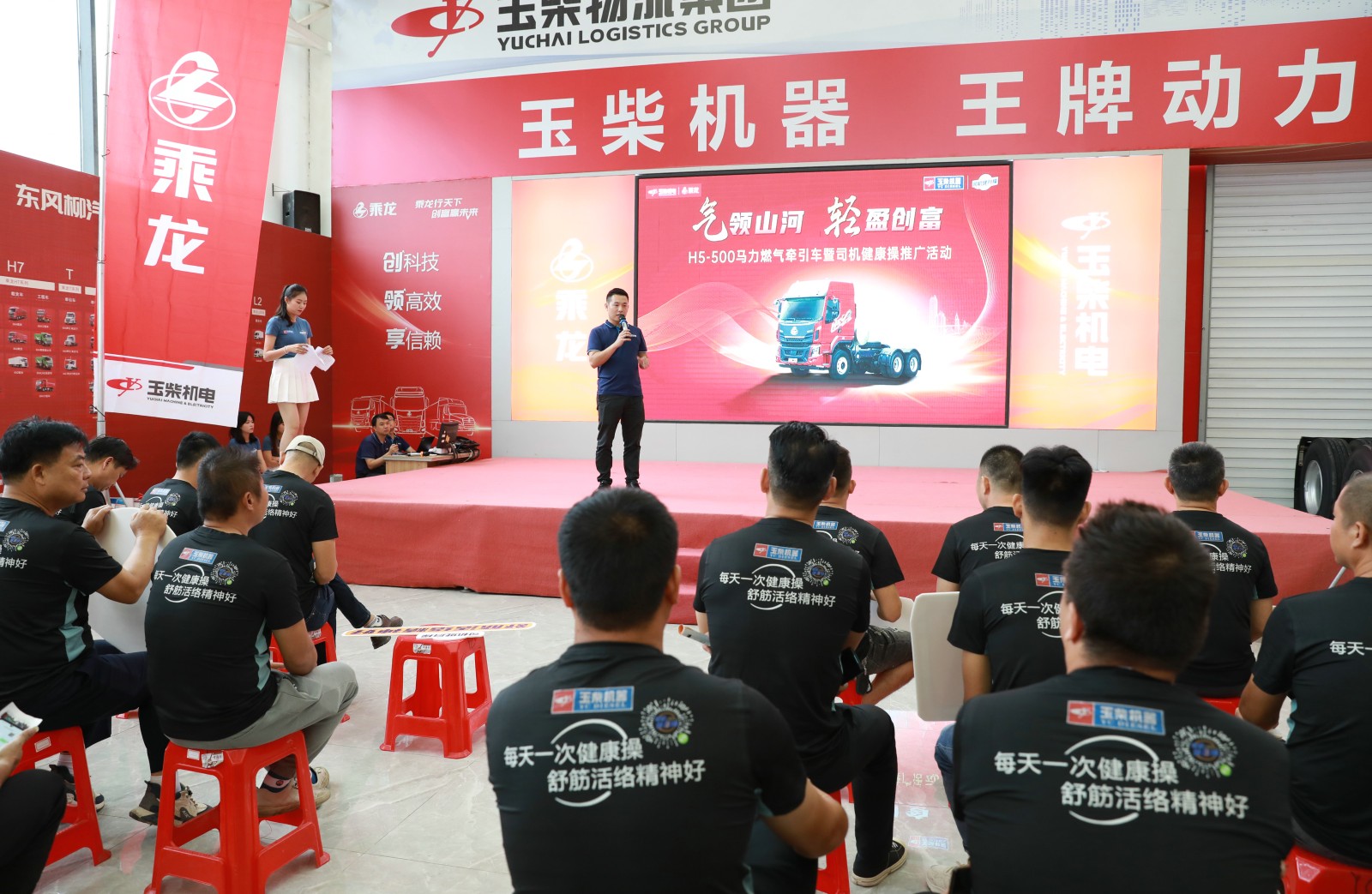 玉柴物流集團聯合品牌公關部開展乘龍H5-500燃氣牽引車推廣暨司機健康操推廣活動