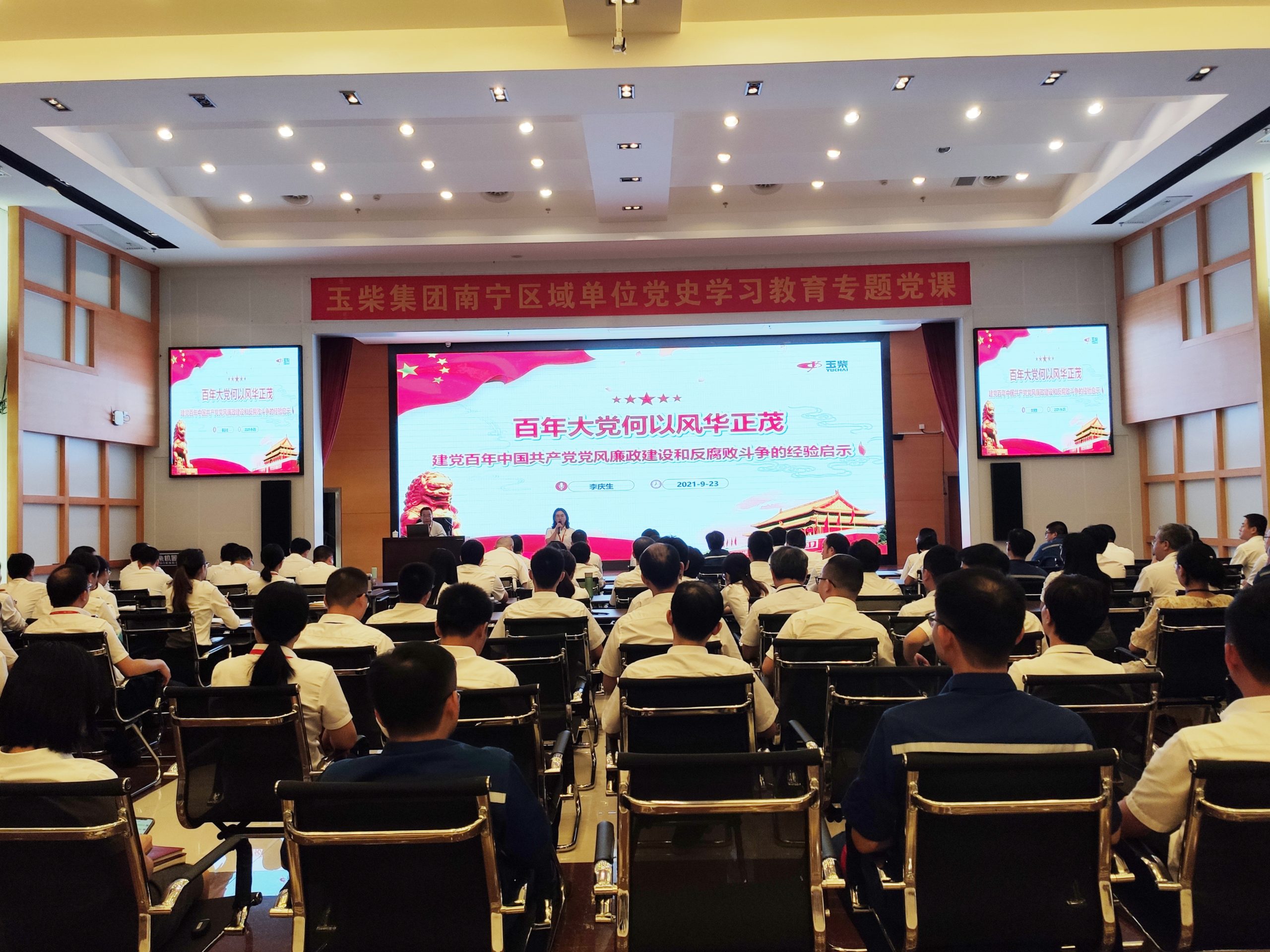 9月23日,玉柴集團(tuán)紀(jì)委書記李慶生以“百年大黨何以風(fēng)華正茂——建黨百年中國共產(chǎn)黨黨風(fēng)廉政建設(shè)和反腐敗斗爭的經(jīng)驗(yàn)啟示”為題,為在南寧區(qū)域辦公的玉柴物流集團(tuán)黨委、工程研究院黨委、新能源動(dòng)力黨支部、玉柴專汽黨支部、玉林賓館黨支部等五個(gè)基層黨組織黨員講授了一堂別開生面的黨史學(xué)習(xí)教育專題黨課。